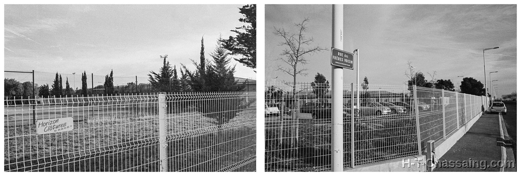 Grilles avec en arrière plan le CRA, Rue des Frères-Voisins, lotissement Torremilla, 66000 Perpignan. Capacité : 48 places (source Wikipédia). France 2014