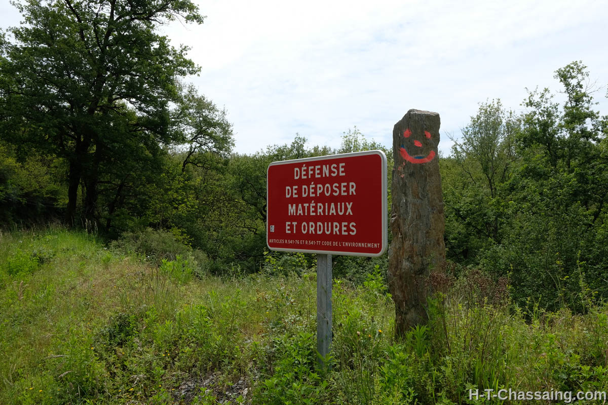 « Défense de déposer matériaux et ordures – Articles […] Code de l’environnement ». Saint-Constant-Fournoulès. Cantal, Auvergne. France – 25 Mai 2024.
