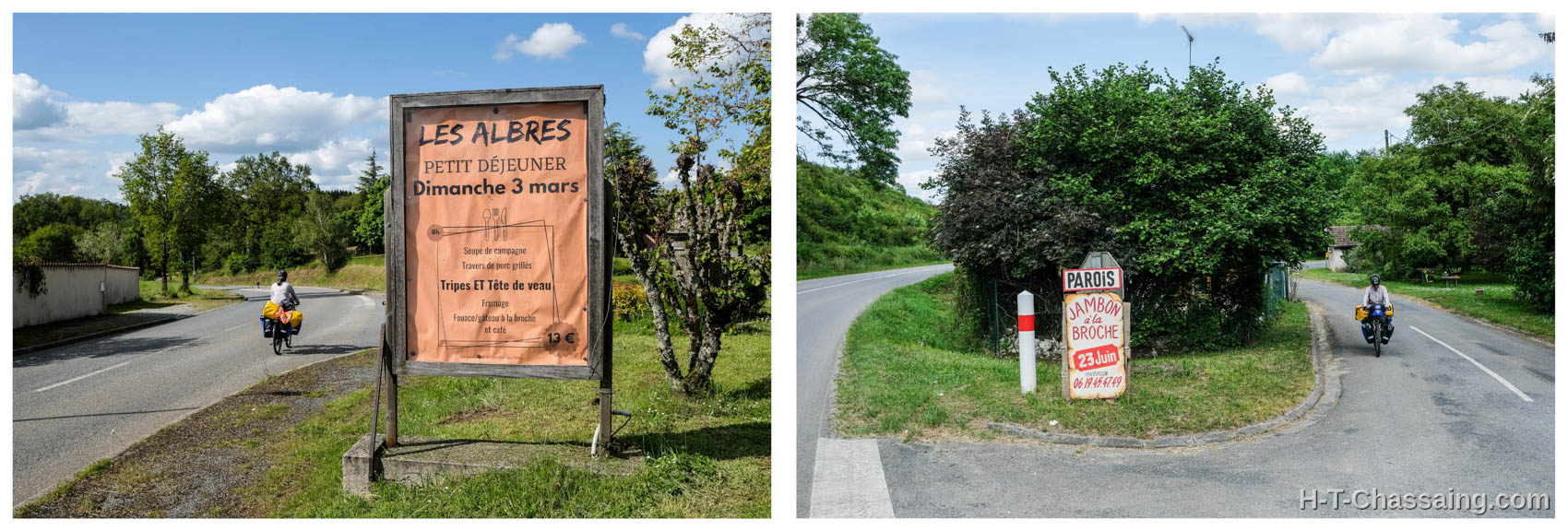 Hélène à vélo essaye de résister aux propositions culinaires qui se déclinent au bord de la route.