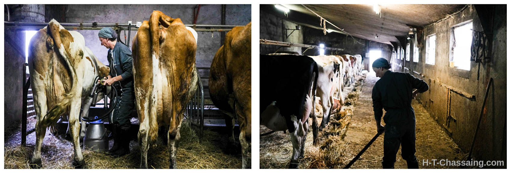 – Isabelle fait la traite en se déplaçant d’une vache à l’autre avec la trayeuse. Quelque chose de plus en plus rare et de bien différent des quais de traite habituels.