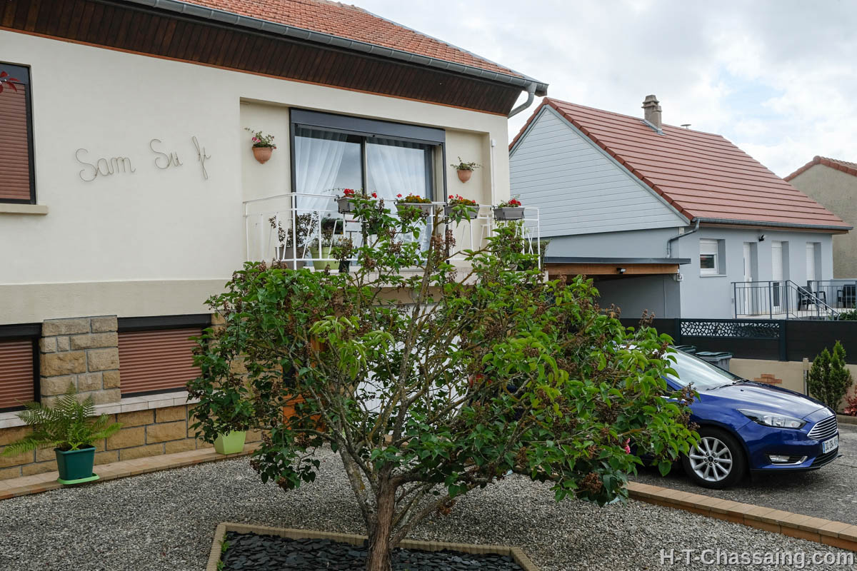 « Sam Su fi ». Le bonheur en lettres forgées sur le mur de cette maison. Doncourt-lès-Conflans. Meurthe-et-Moselle, Grand Est. France – 14 Juin 2024.