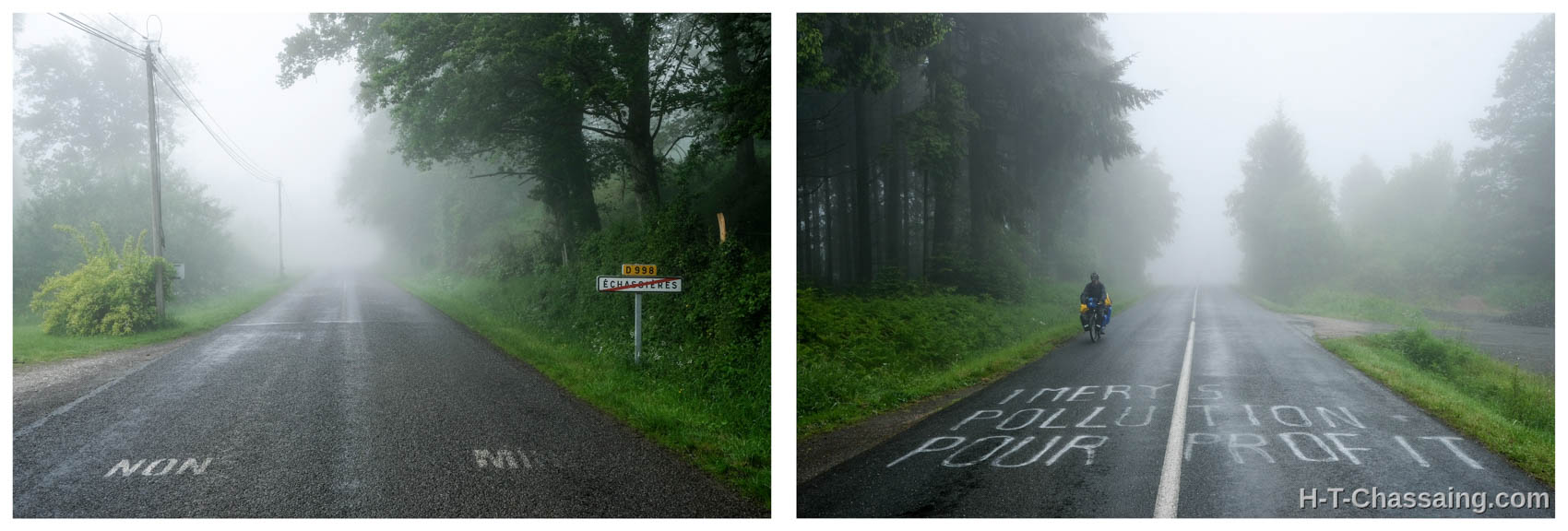 – Construction de la Zone d’Activité de la Dinotte 2. Une première partie avait déjà été construite un peu plus bas. Cela fait un lien avec le sujet sur l’artificialisation des terres que nous avons réalisé il y a quelques années. Un peu gêné, un ouvrier nous dit qu’il faut bien créer du travail.