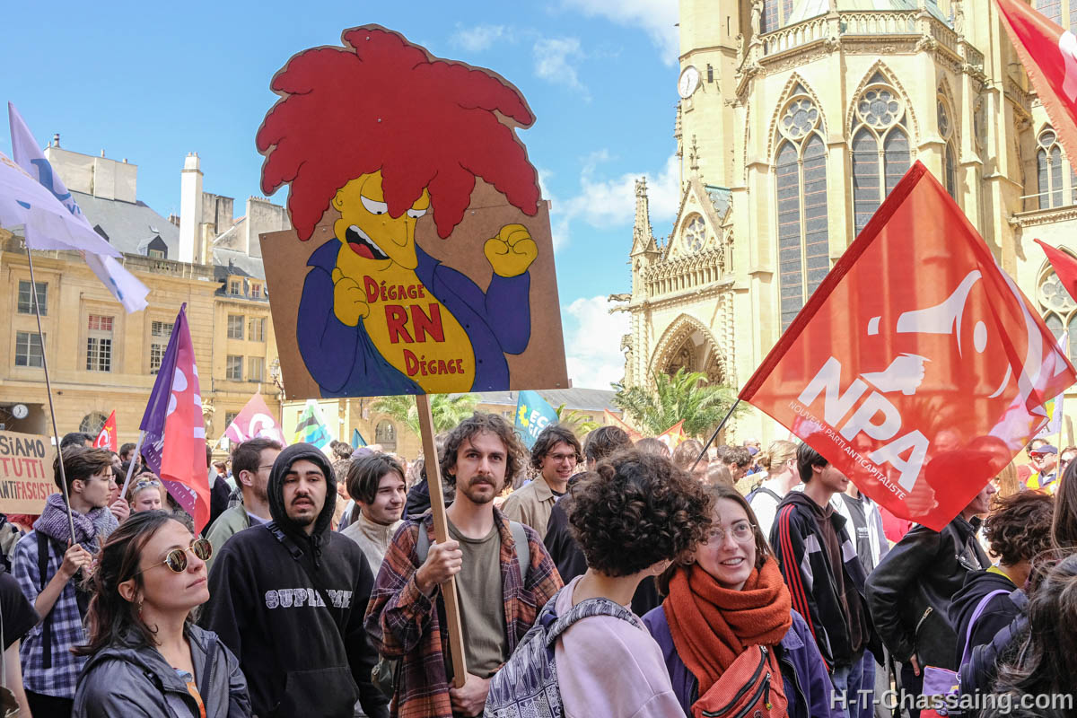 Manifestation/Mobilisation à l’initiative des syndicats contre l’extrême droite suite à l’arrivée en tête du RN aux élections européennes. Metz. Moselle, Grand Est. France – 15 Juin 2024.