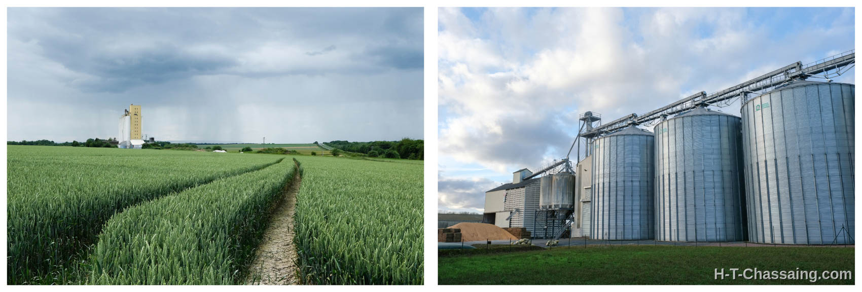 – Silos à grain. Stockage de céréales. Entre Le Puy-Notre-Dame et La Chaussée. France – 3 Décembre 2024