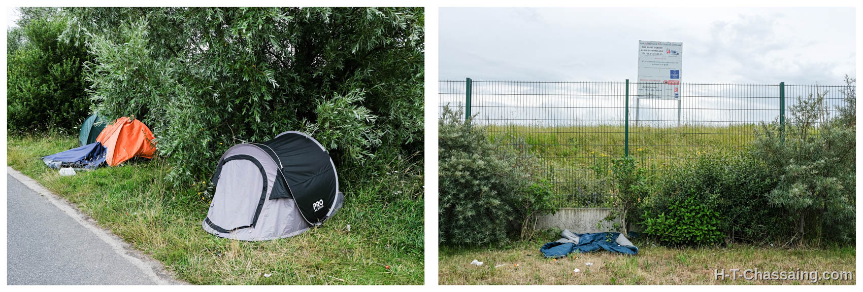 – Tentes de migrants candidats à la traversée de la Manche en direction du Royaume-Uni.