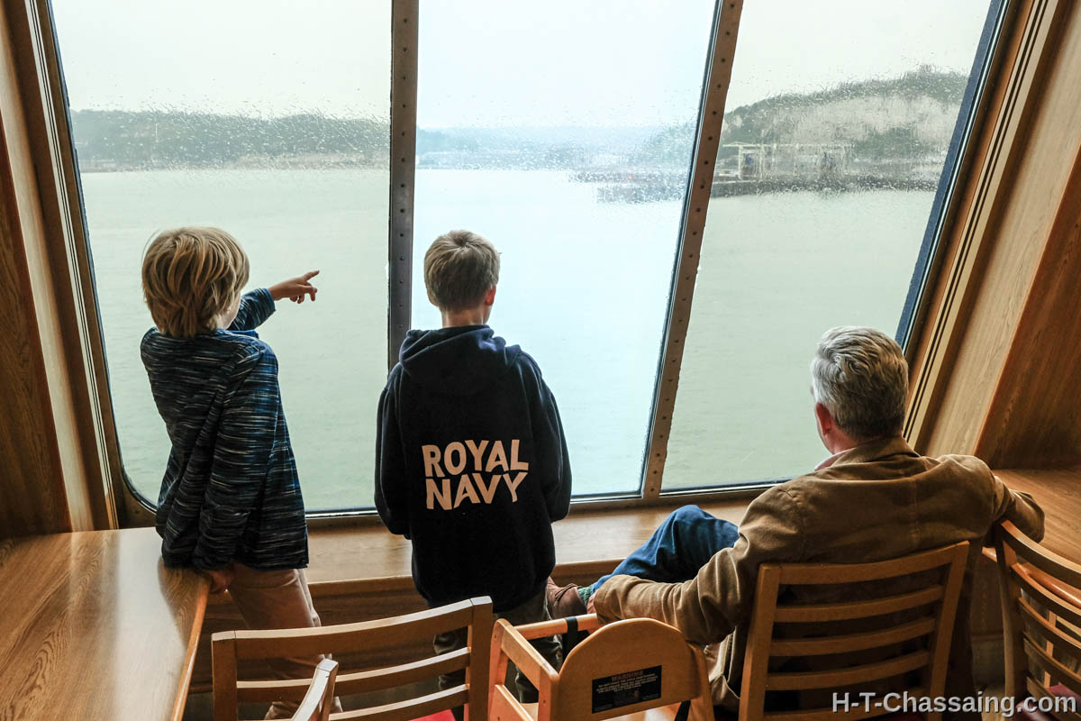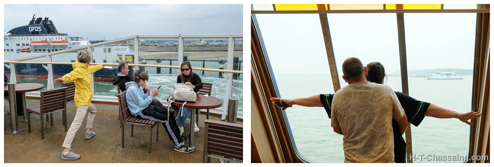 Une famille regarde les falaises de Douvres se rapprocher. Sur le ferry Calais-Douvres. Douvres, Angleterre. Royaume-Uni – 9 Juillet 2024.