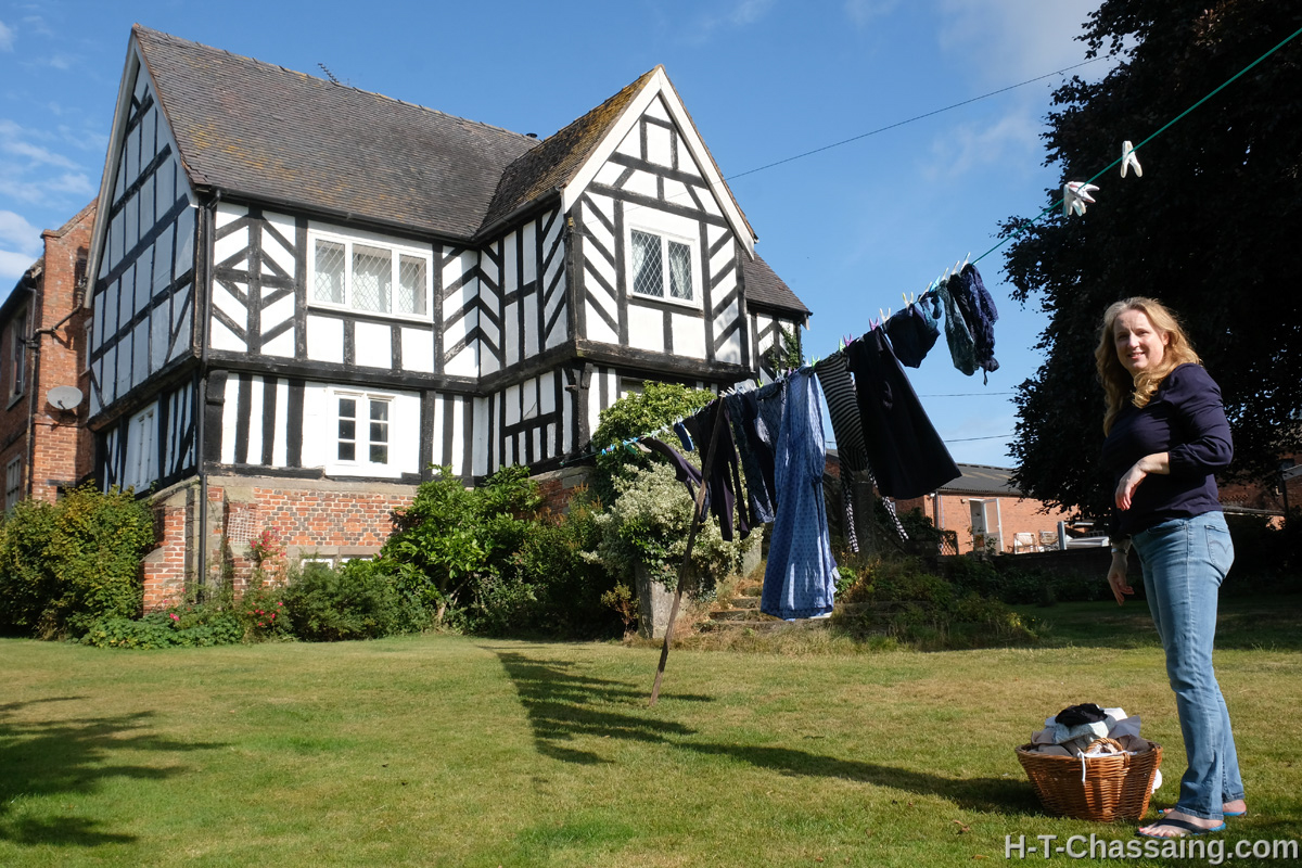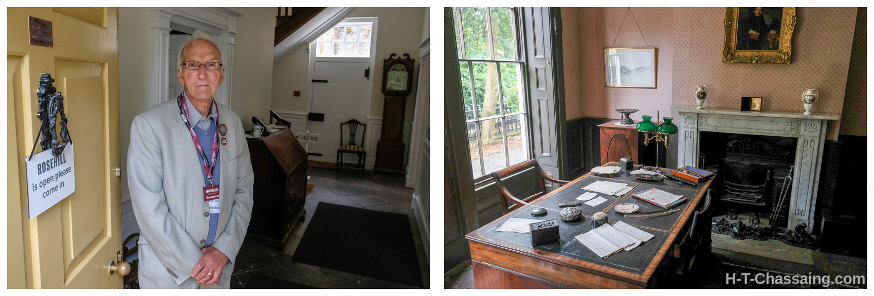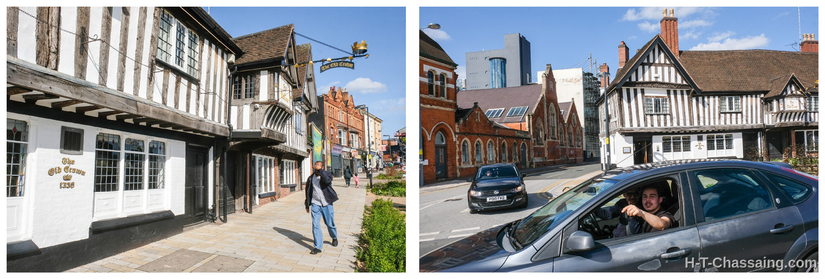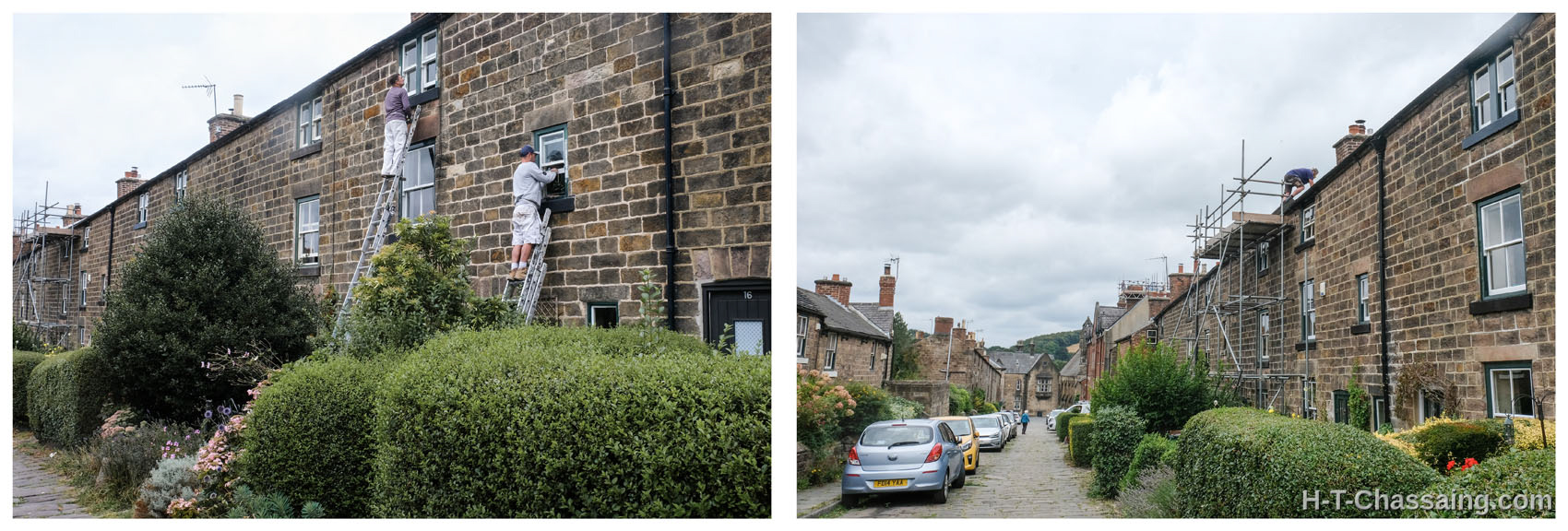 – À l’entrée de la rue « Short Row, district of Amber Valley », dans le prolongement de la William Street (William, l’un des 3 frères Strutt). La canne de ce monsieur a été fabriquée ici et chaque sticker correspond à un lieu visité, nous explique-t-il.