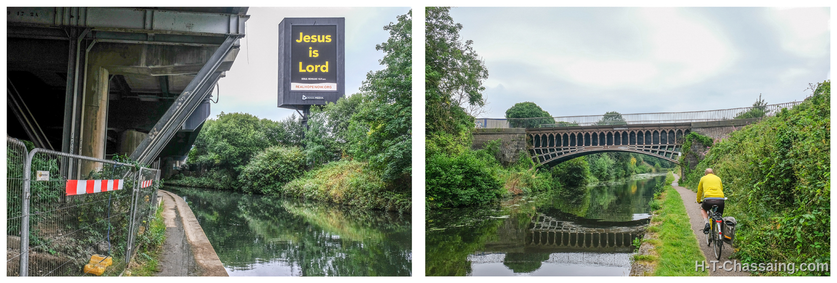 – « Jésus est Seigneur » et cycliste au bord du canal non loin du pont de Galton.