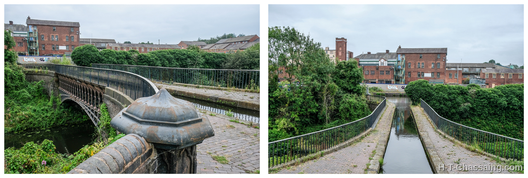 Aqueduc de bras moteur (Engine Arm Aqueduc), non loin du pont de Galton. « […] à un moment donné, le canal de Titford est transporté sur la nouvelle ligne principale de Telford sur un aqueduc », nous dit ERIH. Smethwick. Midlands de l’Ouest, Angleterre. Royaume-Uni – 19 Août 2024.