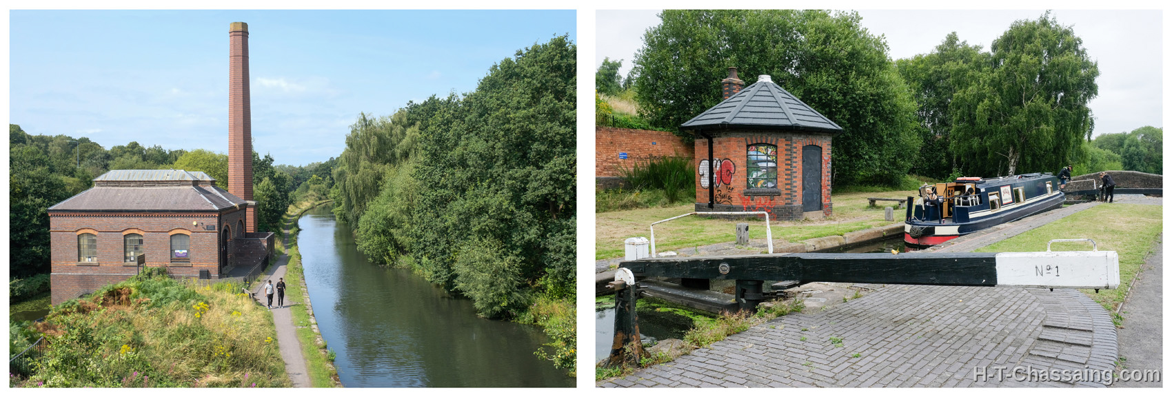 – Station de pompage sur le canal près du pont de Galton. Le site ERIH nous dit qu’« il y avait beaucoup de difficulté à faire entrer l’eau dans le canal, car Birmingham se trouve sur un haut plateau, et la circulation sur le canal était beaucoup plus importante que prévu, entraînant une congestion. Une énorme machine à vapeur a été installée pour pomper l’eau dans le canal ».