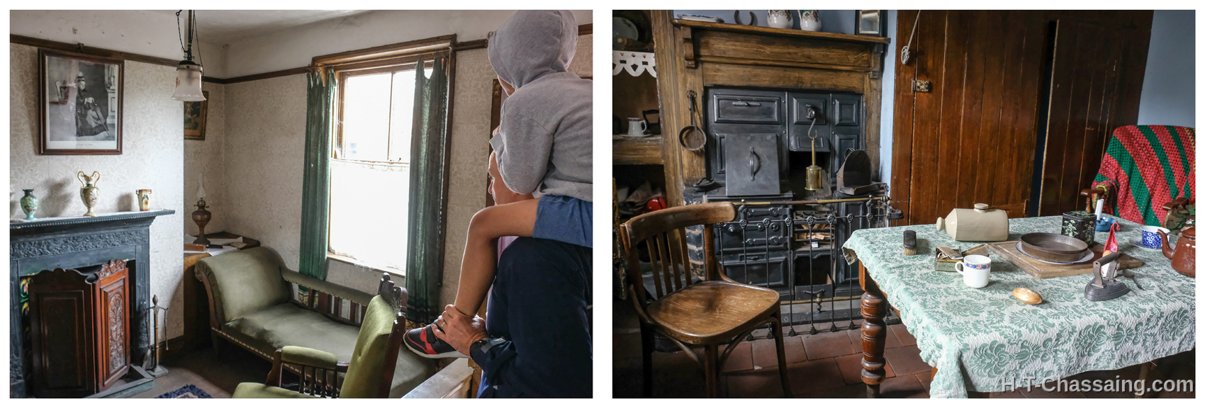 – Cuisine d’une maison Back-to-Back avec le typique poêle encastré.