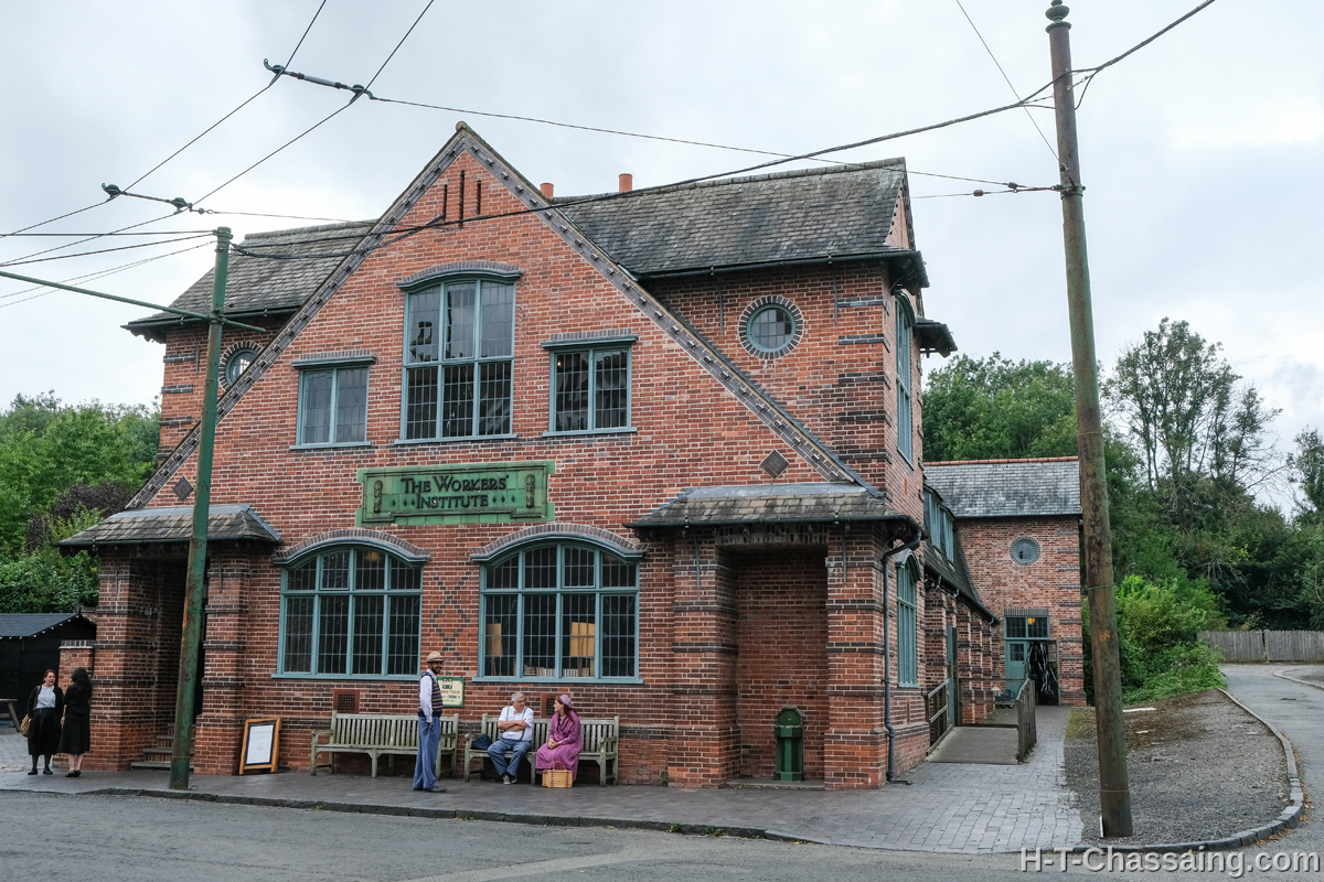 Des figurants en tenue d’époque devant « L’Institut des Travailleurs ». À l’intérieur, une bibliothèque, une salle de conférence, etc. Black Country Living Museum. Birmingham, Midlands de l’Ouest, Angleterre. Royaume-Uni – 19 Août 2024.