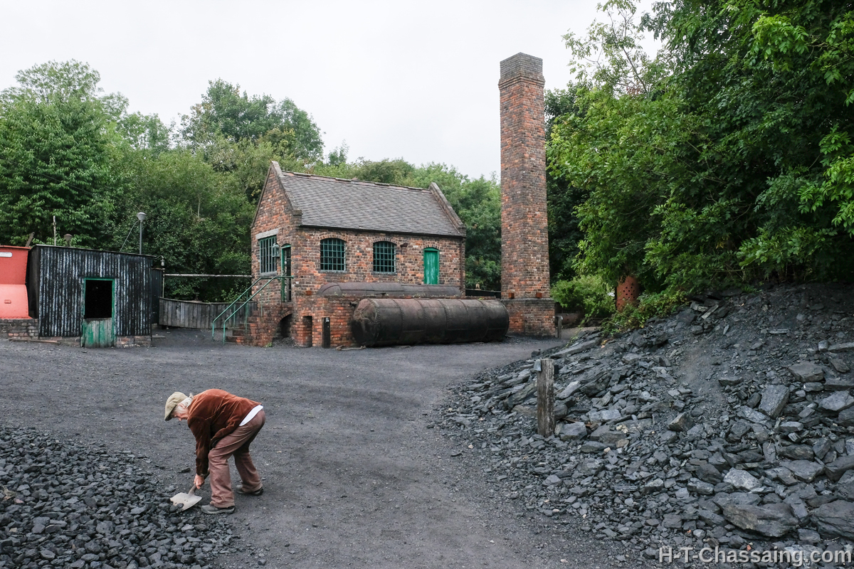À l’intérieur de la conciergerie, sur le panneau au mur : « Racecourse Colliery représente une mine typique du Black Country des premières années du 20e Cent. Il y avait jusqu’à cinq ou six cents « rough & ready » puits comme ça dans la région.
