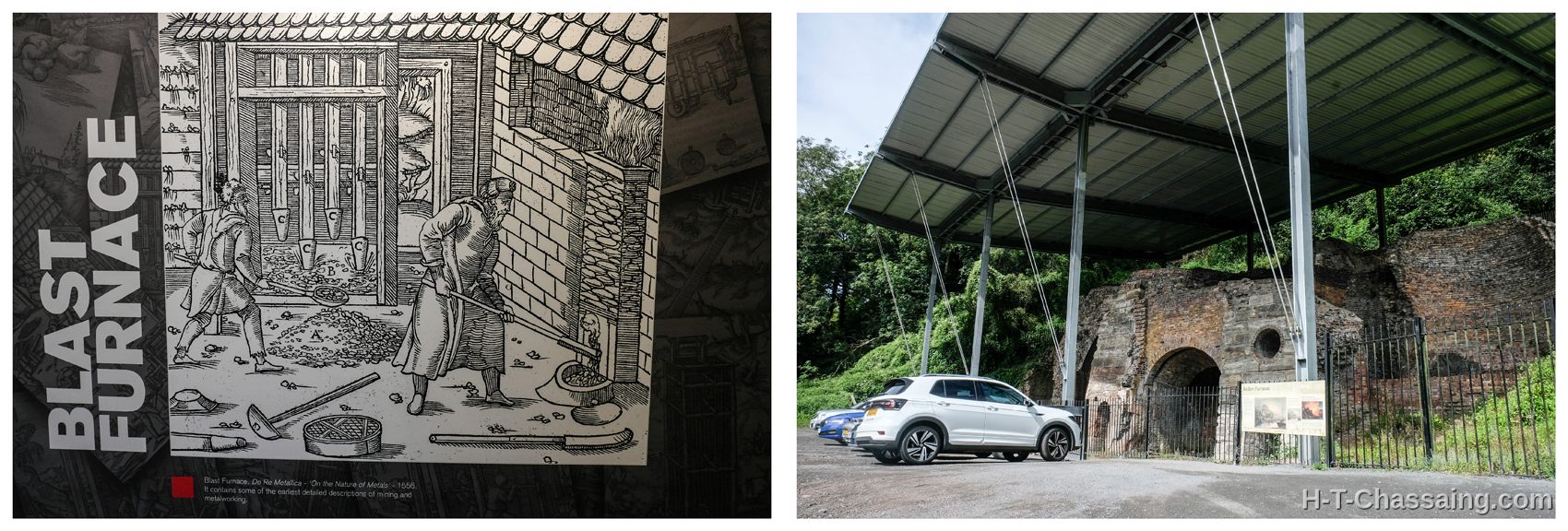 – « Entrée principale » qui mène à la mine souterraine reconstituée. À l’époque, « le travail des veines de charbon peu profondes et l’avènement de l’industrialisation ont transformé cette zone », nous dit le musée. Le Pays Noir doit son nom à la présence d’importante couches de charbon à exploiter, à la métallurgie ainsi qu’à la pollution visuelle générée.