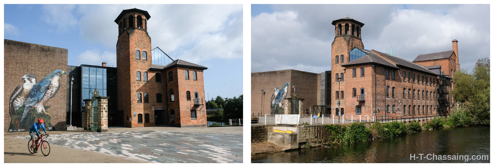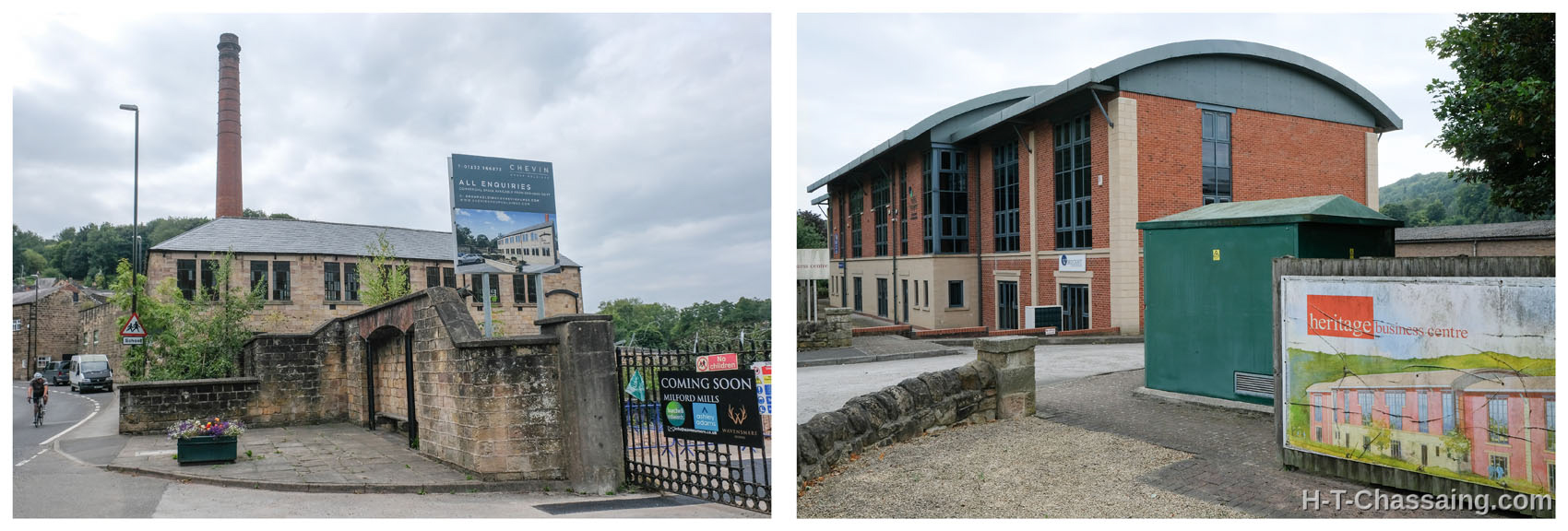 – Moulin de Milford sur la rivière Derwent. Sur le panneau, proposition d’espaces commerciaux dans ce moulin. Sur le site du Moulins de la vallée de la Derwent – Patrimoine mondial du Royaume-Uni (Derwent Valley Mills – World Heritage UK), nous lisons que : « Les quatre principaux établissements industriels de Cromford, Belper, Milford et l’abbaye de Darley sont articulés par la rivière Derwent, dont les eaux fournissaient la puissance nécessaire pour alimenter les filatures de coton ».
