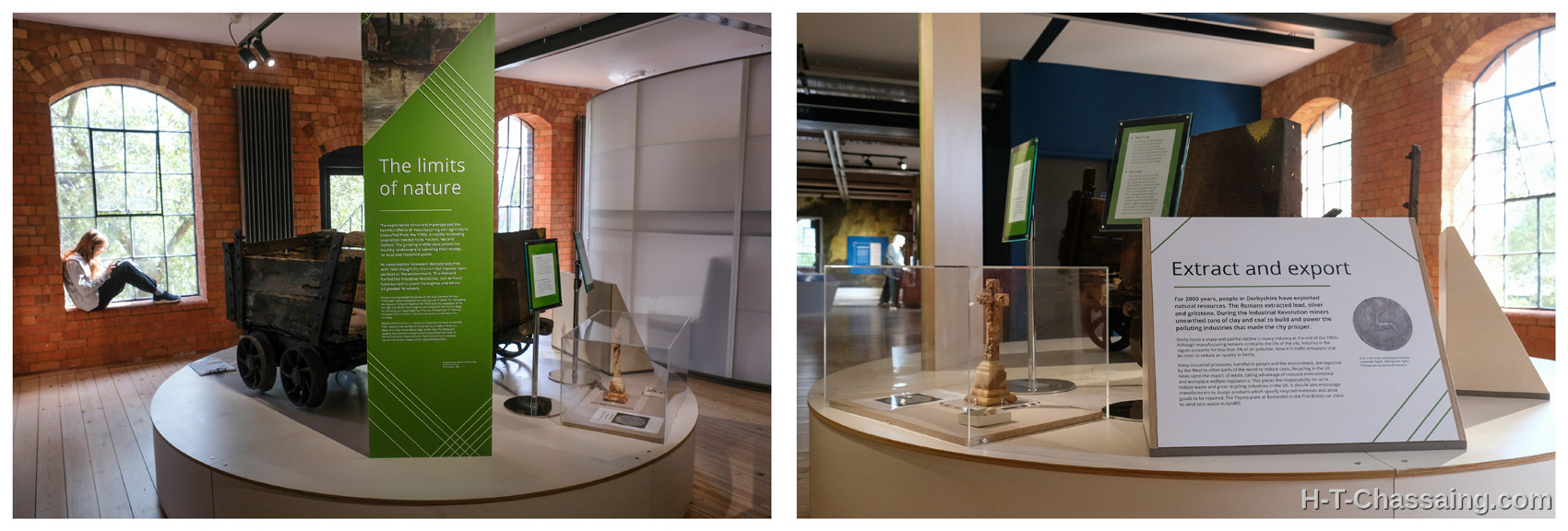 – « Extraire et Exporter – Depuis 2000 ans, les habitants du Derbyshire exploitent les ressources naturelles. Les Romains ont extrait le plomb, l’argent et le grès. Pendant la révolution industrielle, les mineurs ont déterré des tonnes d’argile et de charbon pour construire et alimenter les industries polluantes qui ont fait prospérer la ville. »