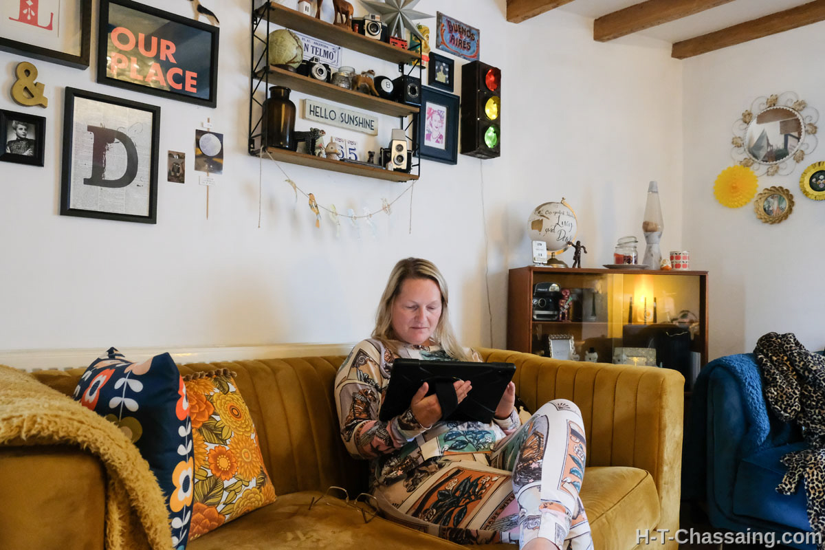 Une de nos hôtes dans une maison de la « Long Row Houses (Maisons en longue rangée) ». Belper. Derbyshire, Midlands de l’Est, Angleterre. Royaume-Uni – 27 Août 2024.