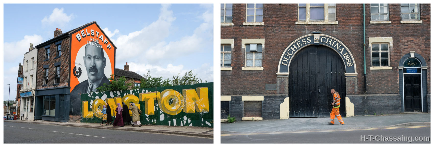 – Mural « Belstaff – Fabriqué à Stoke – Eli Belovitch – Fondateur de Belstaff ». Belstaff, « maison britannique emblématique » est une marque de vêtements créée à Longton, en 1924, par Eli Belovitch et Harry Grosberg, notamment des vêtements imperméables pour motocyclistes. Bel de Belovitch et Staff de Staffordshire. En face du musée de la poterie Gladstone.