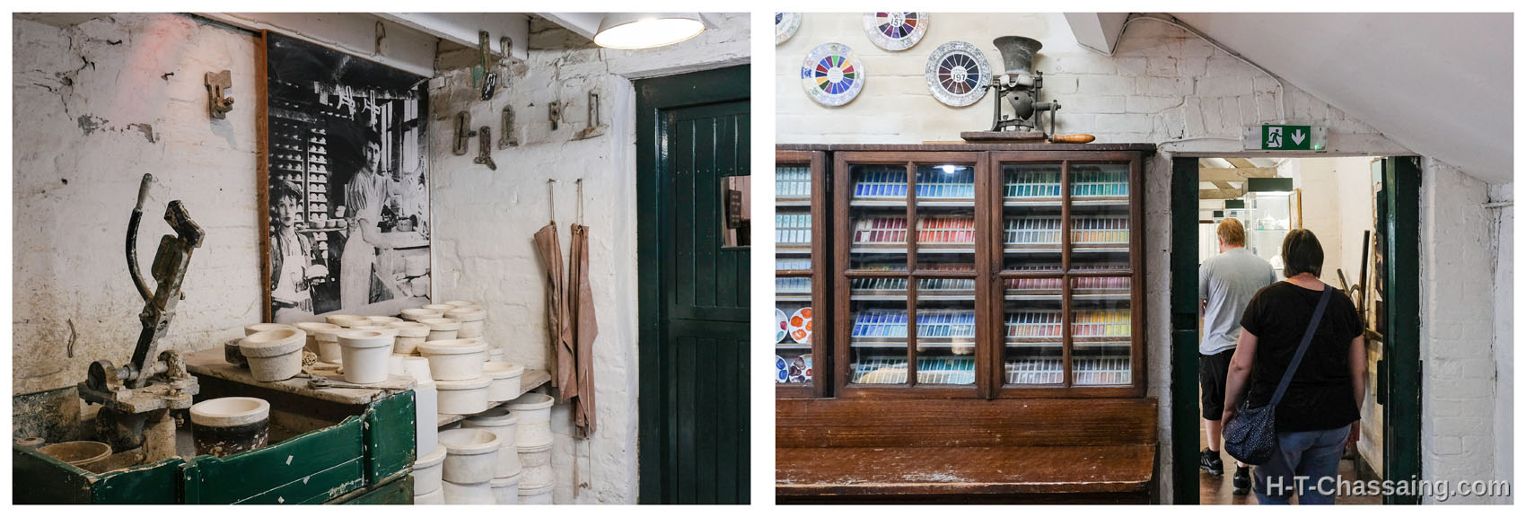 Visite du Musée de la Poterie de Gladstone. Ici, les moules et les couleurs. Longton, Stoke-on-Trent. Staffordshire, Midlands de l’Ouest, Angleterre. Royaume-Uni – 30 Août 2024.