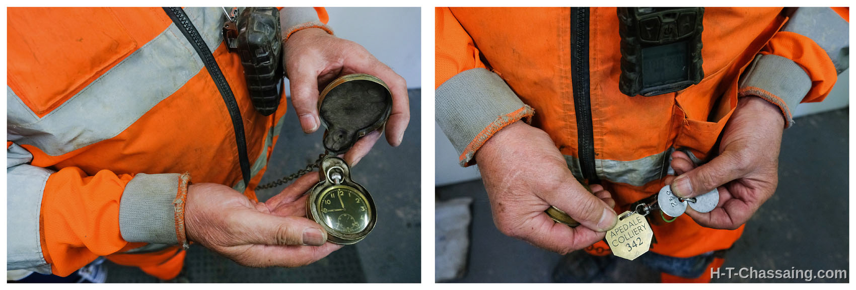 – Montre de 50 ans, protégée dans la boîte. 4 heures, 6 heures, on descendait à la mine. En 1870, les hommes descendaient dans la mine, les femmes transportaient le charbon, les enfants ouvraient la porte.